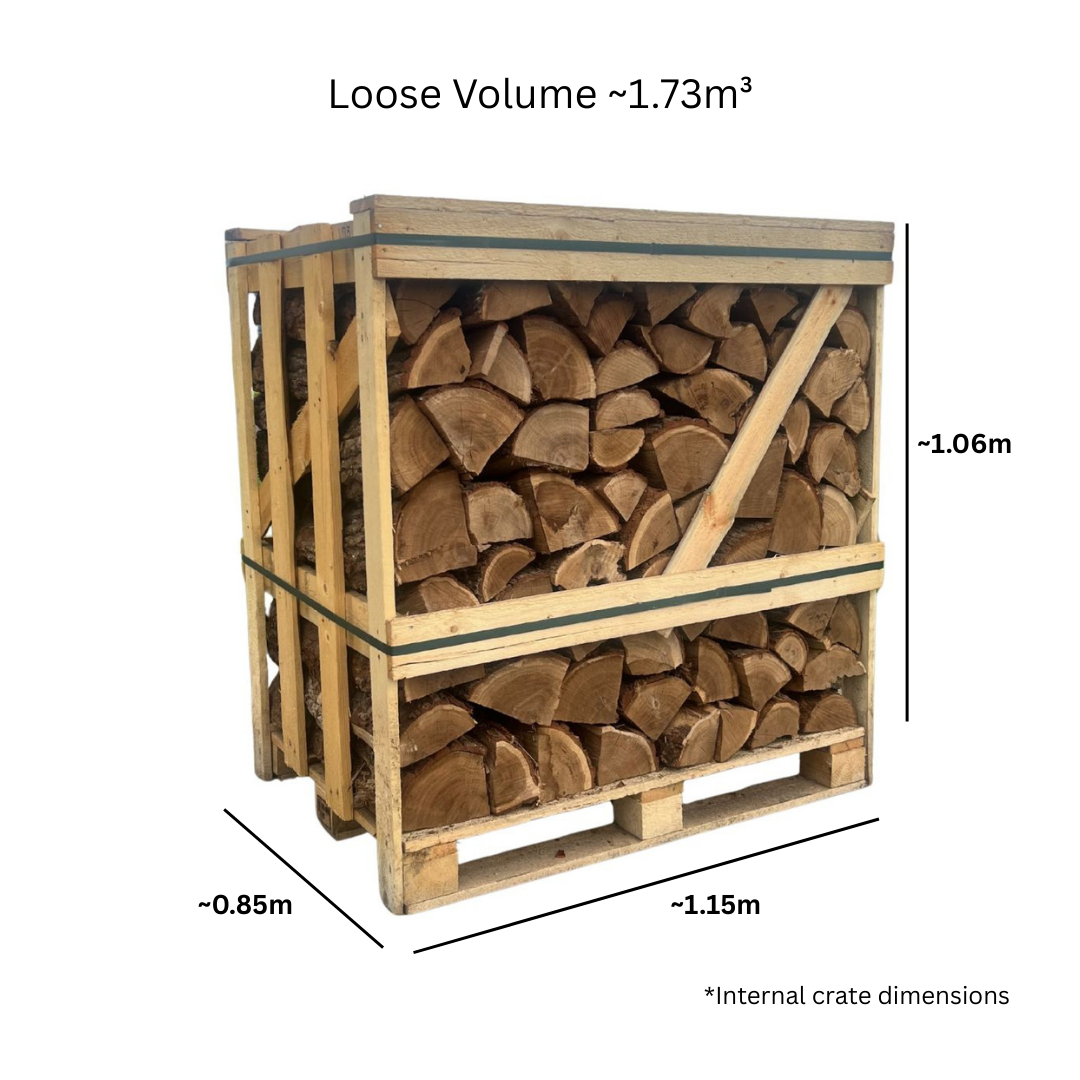 This oak firewood combines convenience with premium quality. Each crate contains 99% kiln-dried oak logs, with only a small number of other hardwoods possibly included.