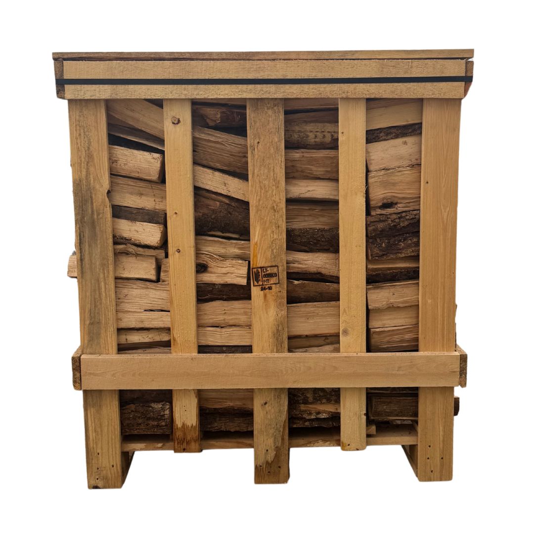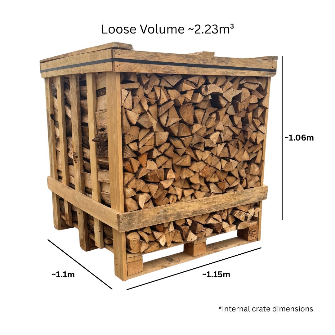 Delivered in a sturdy wooden crate that many customers reuse as a log store or for kindling once empty. Disposal of the empty crate remains the customer’s responsibility. If a full crate isn’t suitable for your setup, kiln-dried ash is also available in convenient nets for easier handling.