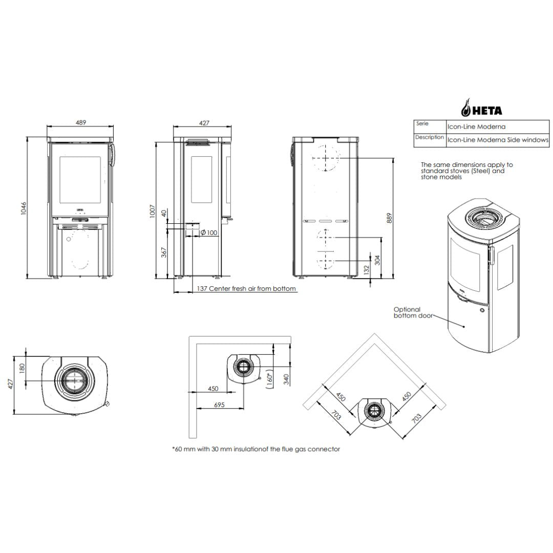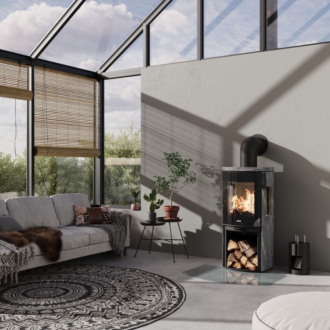 The HETA Icon-Line Moderna Side Windows 6.2 kW is a sleek, contemporary wood-burning stove that creates a calm and inviting focal point in any home. Designed with panoramic glass panels on the front and sides, it offers a stunning, uninterrupted view of the flames from multiple angles, filling your space with warmth and atmosphere.
