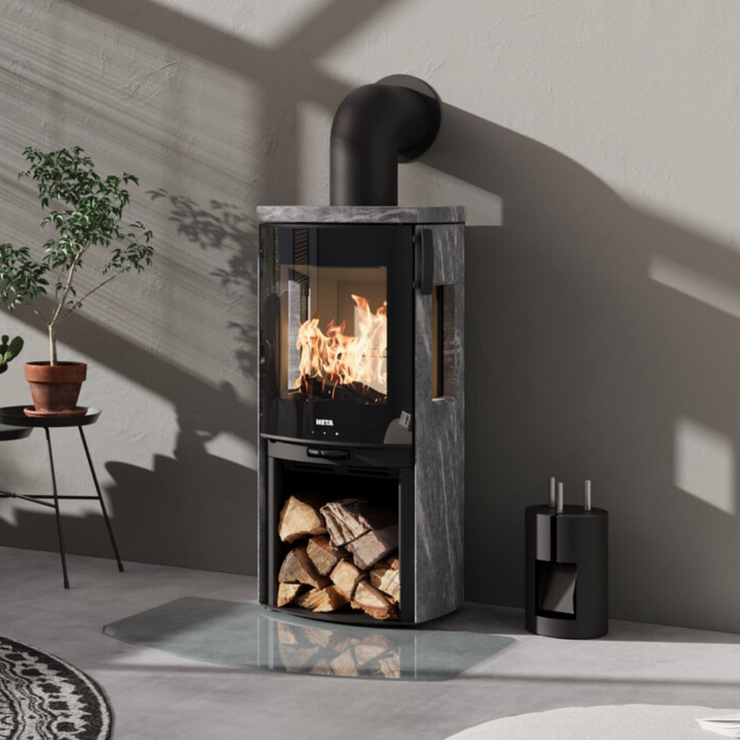 Available with either a clean plinth base or a matching lower door, the Moderna allows you to tailor its look to your interior style while maintaining a refined, minimalist aesthetic. For those seeking an extra touch of luxury and heat retention, the Moderna can be upgraded with Soapstone cladding - a natural stone that absorbs and gently releases warmth for hours after the fire has gone out.