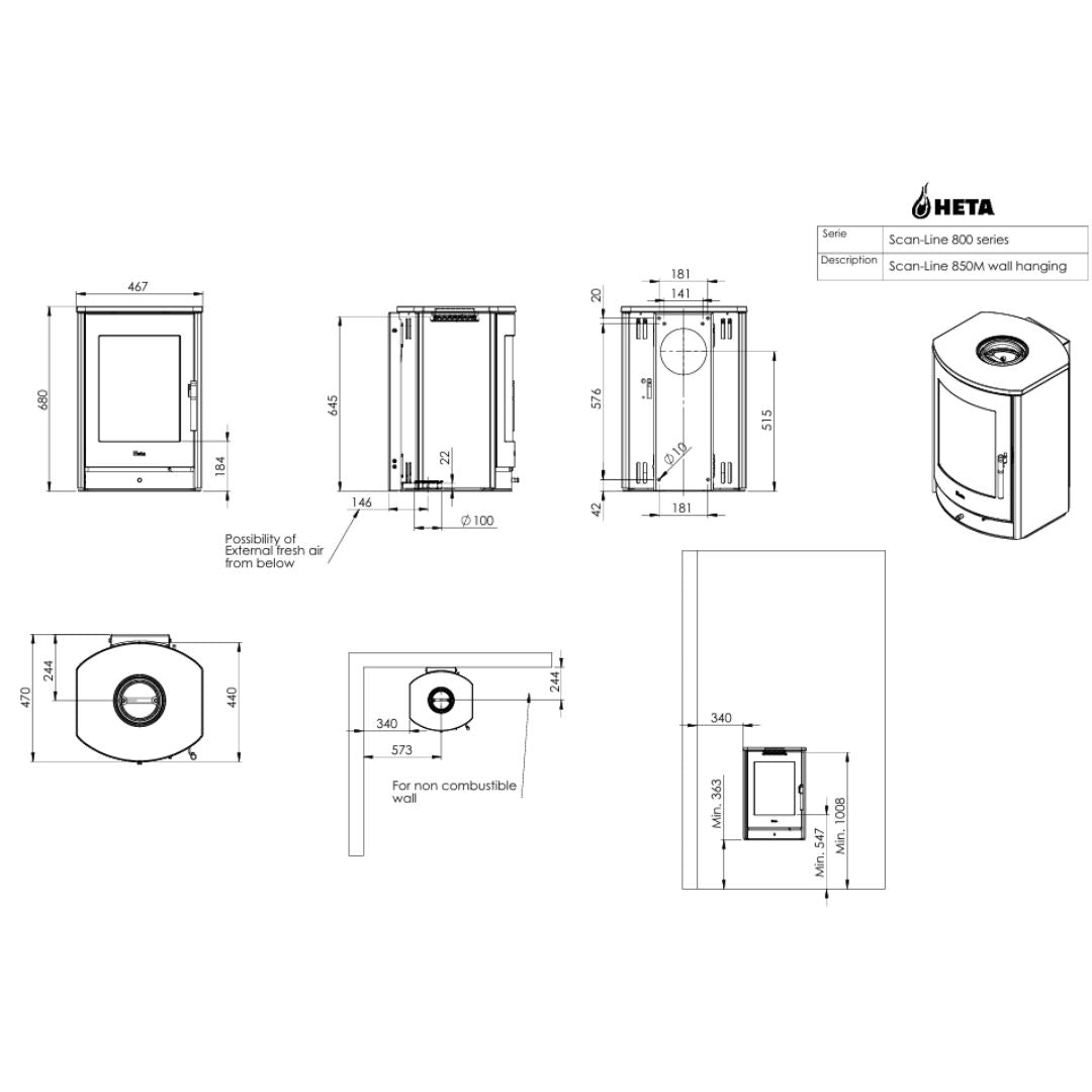 The HETA Scan-Line 850M Wall Hanging stove is a slim, contemporary evolution of the popular Scan-Line 850, designed to bring modern Scandinavian style into your home. Wall-mounted for a clean, floating appearance, it creates a striking focal point without taking up valuable floor space.