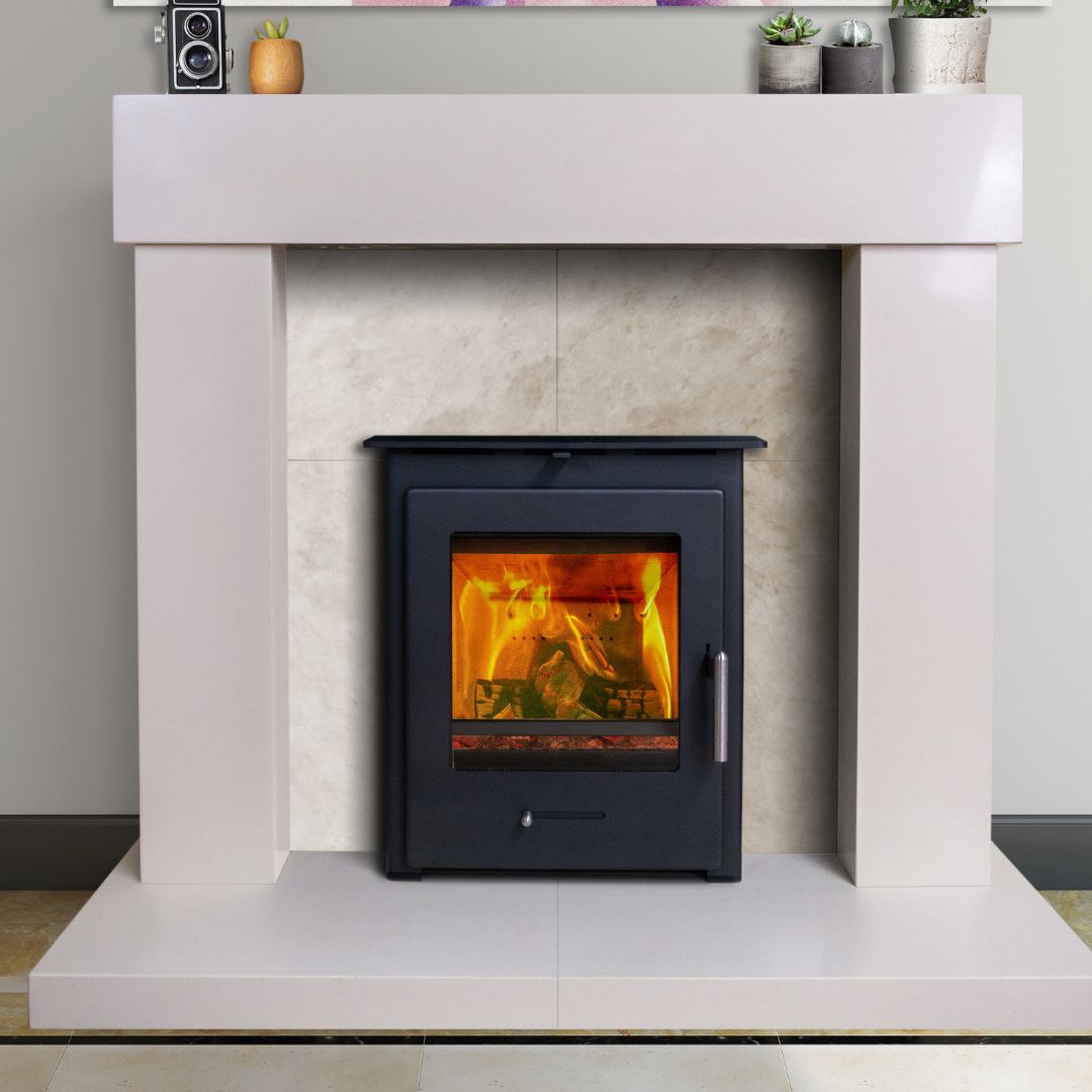 The stove features convection sides and a convection top plate to help distribute heat evenly into the room. A cool-to-touch stainless steel lift-up handle and matching air control knob add a modern finishing touch, with optional black, chrome or wooden handle upgrades available. The Slimline 30 is Ecodesign compliant and approved for use with both wood and authorised smokeless fuels, making it a practical and future-ready choice for inset installations.