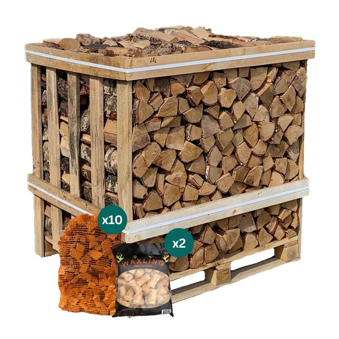 This fuel bundle brings together everything you need for easy, reliable fire lighting in one convenient delivery. It combines a large crate of premium kiln-dried logs with a complete ignition saver bundle, giving you high-quality firewood plus all the essentials to get your fire started quickly and effortlessly.