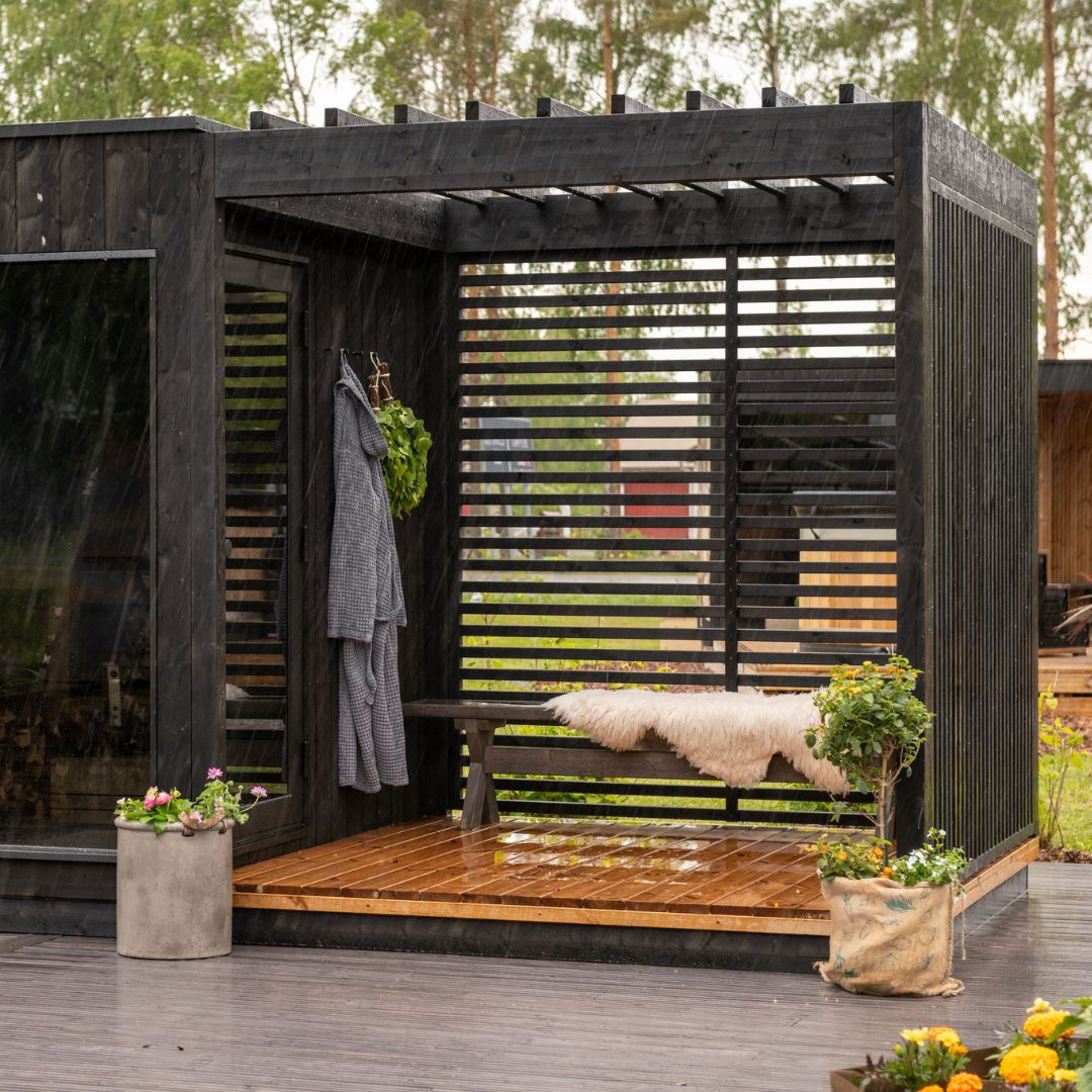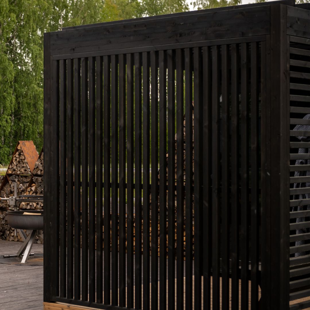 Made from heat-treated black spruce slats, the privacy screen matches the Nordic Misty range perfectly, both in colour and finish. It can be attached to one or more sides of a pergola, allowing you to tailor the layout to suit your space, whether you’re looking to screen off a seating area, create a sheltered corner, or define different zones within your pergola.