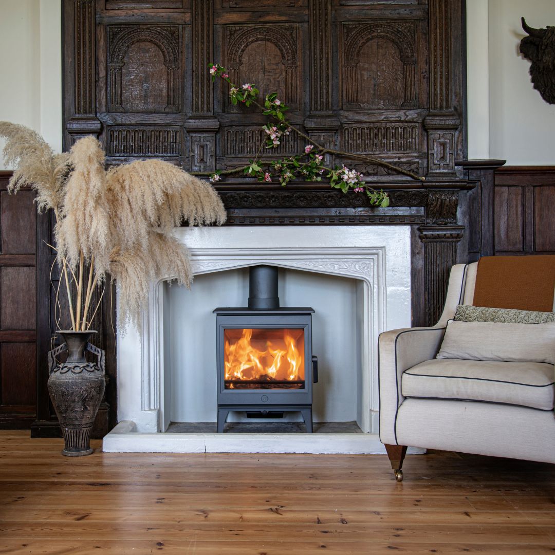 The Cranmore 7 is Eco Design compliant and DEFRA approved for use in smoke control areas, making it a stylish and sustainable choice for larger living spaces.