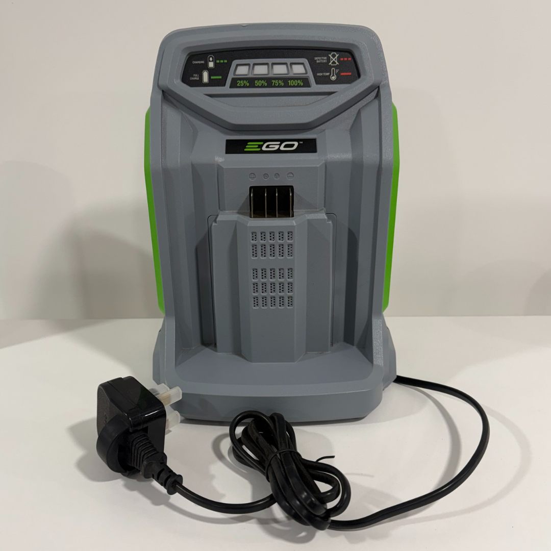 The EGO CH5500E 56V Lithium-Ion Infinity Rapid Charger is one of the fastest chargers available for battery-powered garden tools, allowing you to fully charge your EGO batteries in as little as 25 minutes. It features an LED charging and diagnostics indicator to clearly display the charging progress and battery status. Perfect for those looking to keep their EGO tools running smoothly with minimal downtime.
